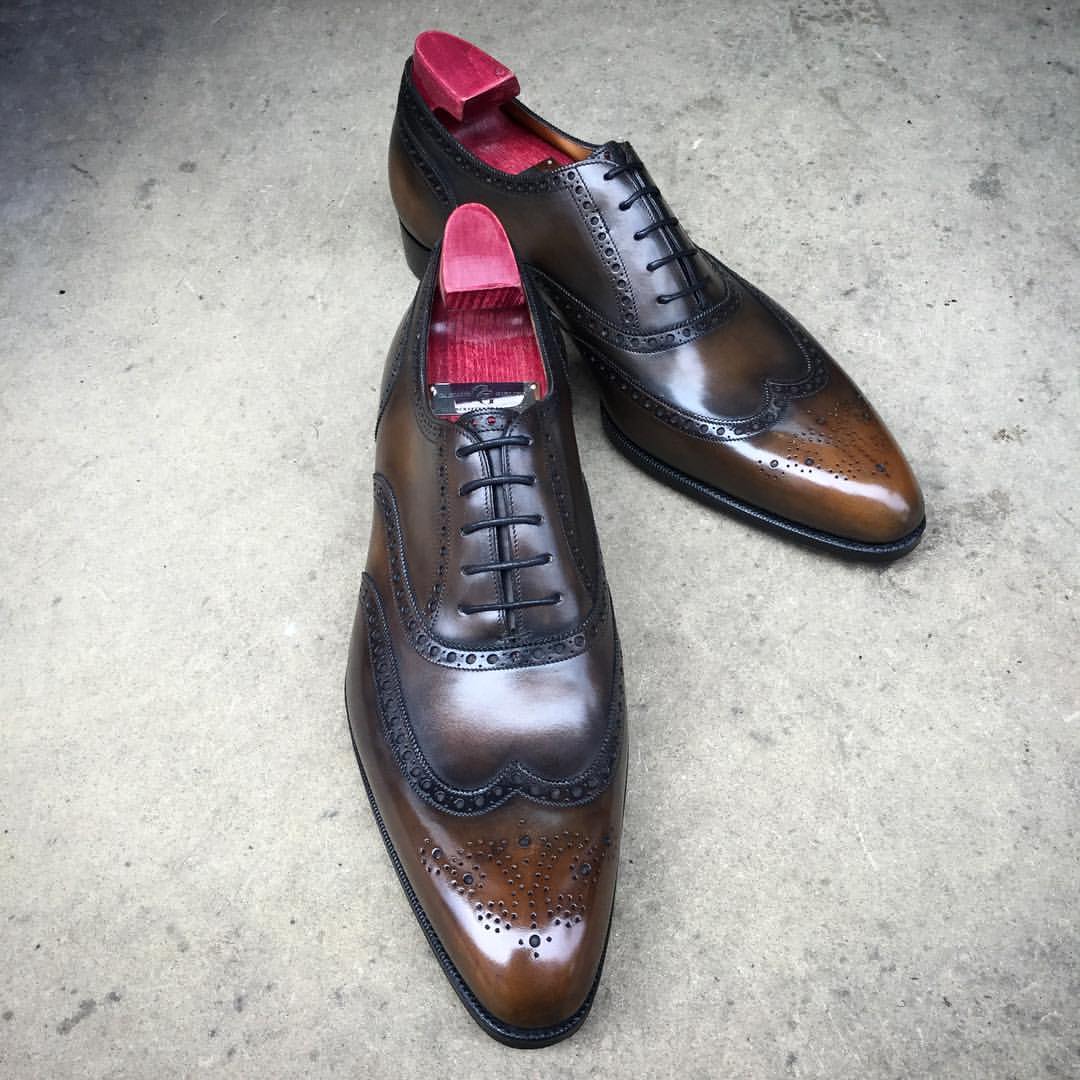 The Rothschild sporting a patina Leather Made to Order Oxford Dress Wingtip Shoes