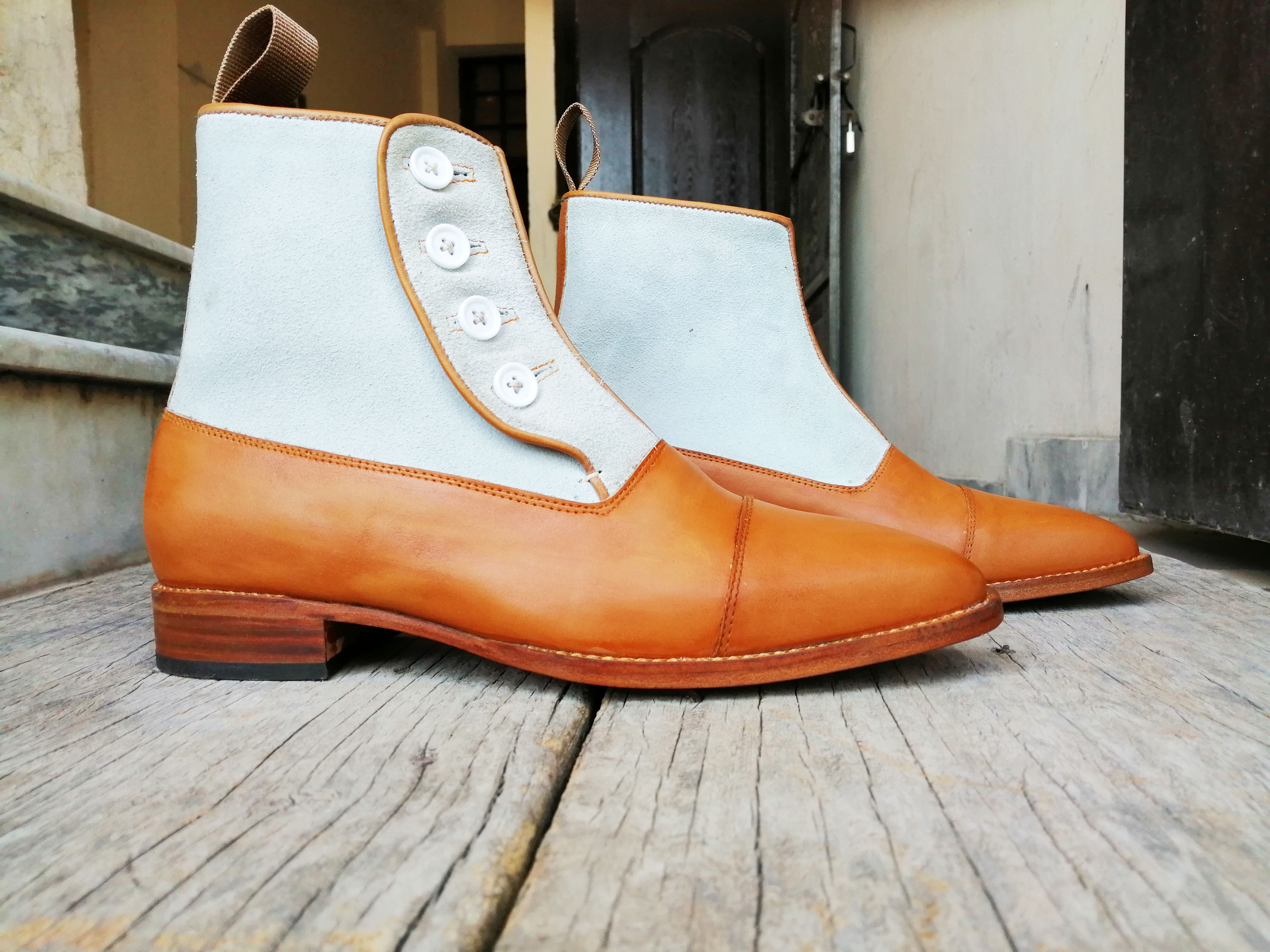Handmade Leather Suede Cap Toe Men's Button Top Ankle Dress Formal Dress Boot