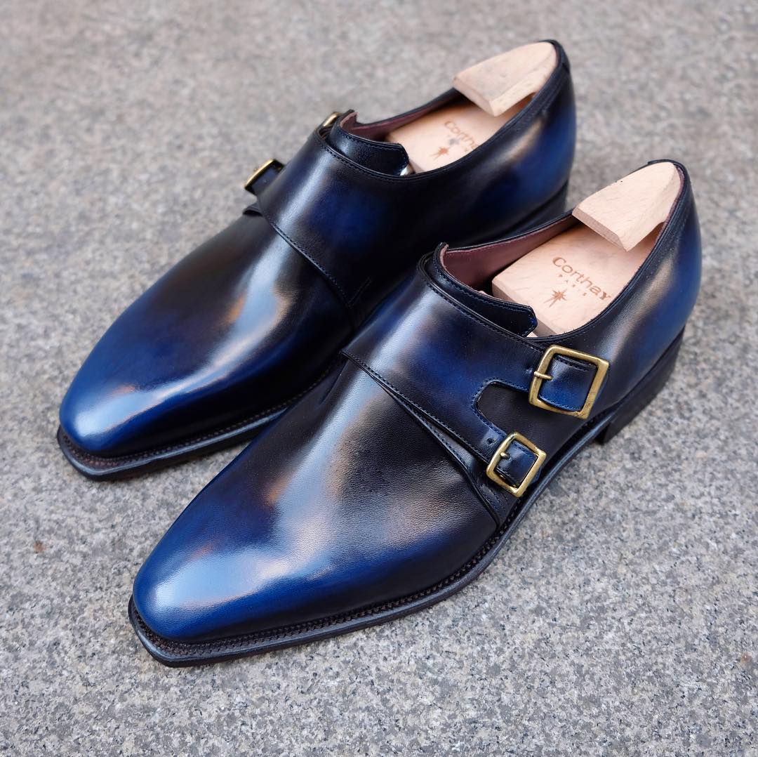Inner: Soft Sole: Leather( Goodyear Welted ) Gender : Male Heel: Leather Color: Blue Style: Double Monk Shoes Totally Hand stitched Manufacturing time 7-10 business days If you can’t find your Size/Color just send us message we will make for you.