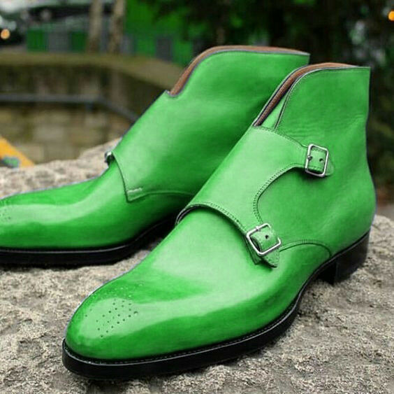 Inner: Soft Sole: Leather Gender : Male Heel: Leather Color: Green Style: High Ankle Double Buckle Strap Boots Lining Soft Calf Leather Lining Totally Hand stitched Manufacturing time 7-10 business days If you can’t find your Size/Color just send us message we will make for you.