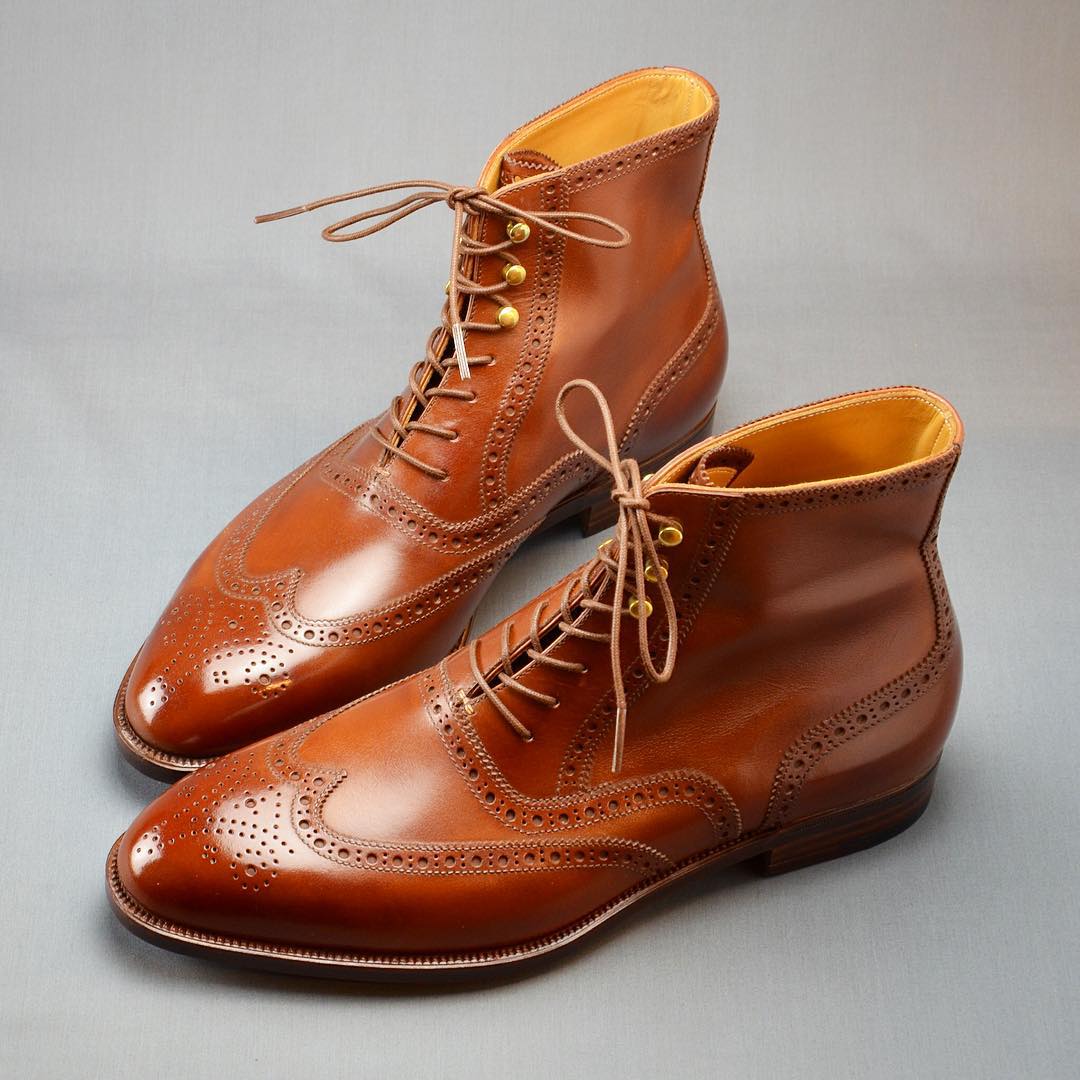 Mens Brown Leather Ankle High Wingtip Lace up Boot