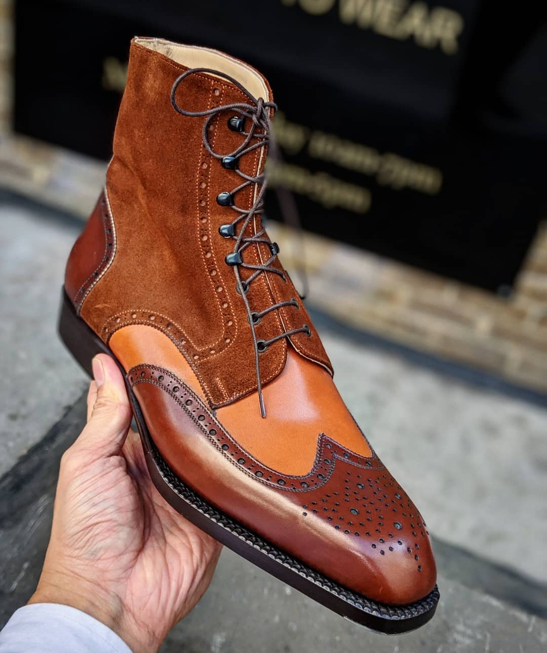 Handmade Mens Brown Tan Suede Ankle High Dress Boot