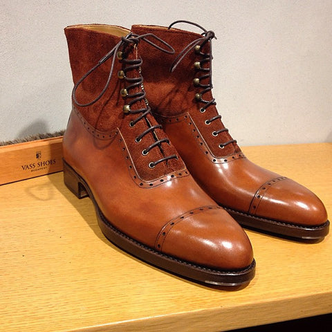 Oxford Boot - Cognac Calf Red Brown Suede Ankle High Lace up Boot