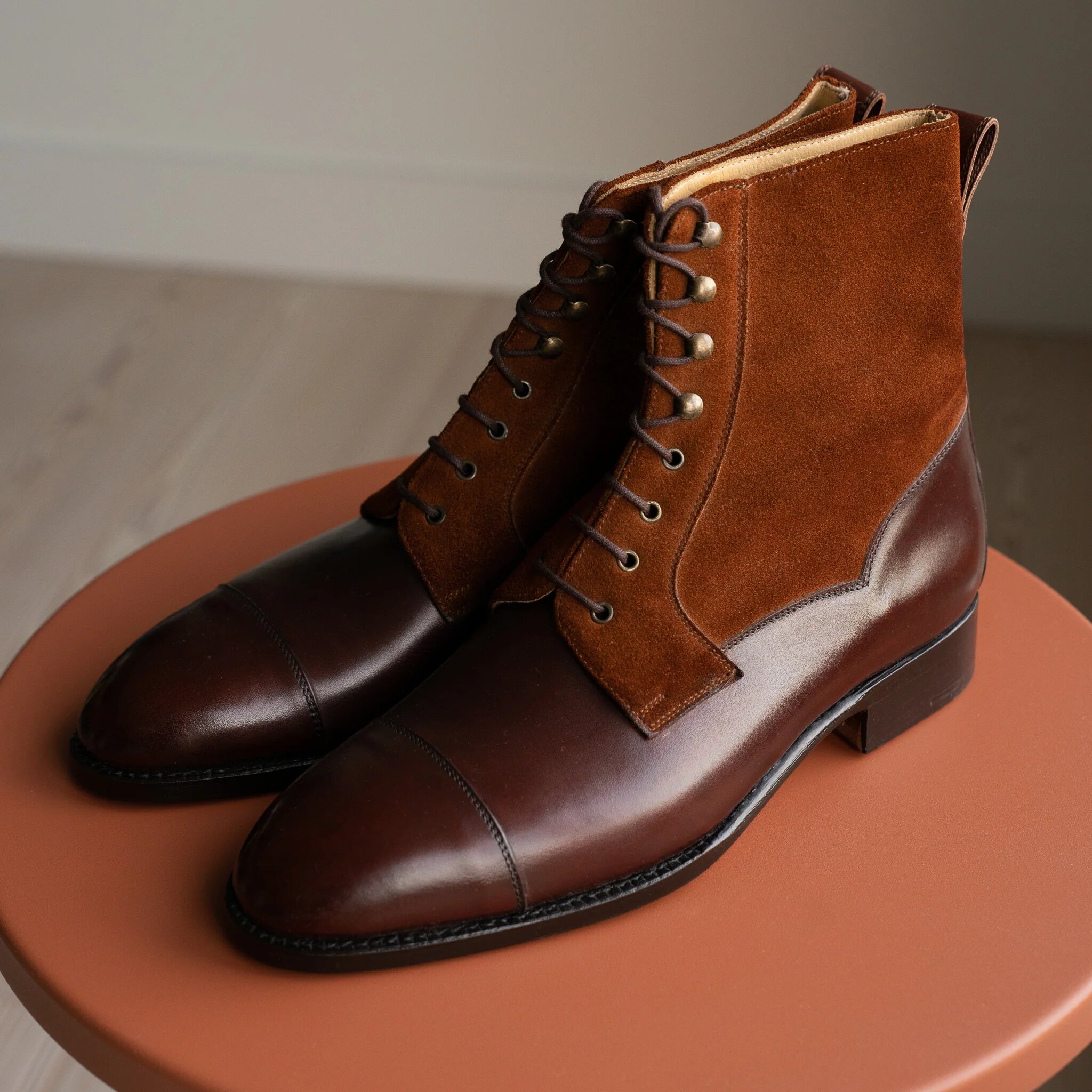 Bespoke Handmade Brown Suede Leather Ankle High Lace up Dress Boot