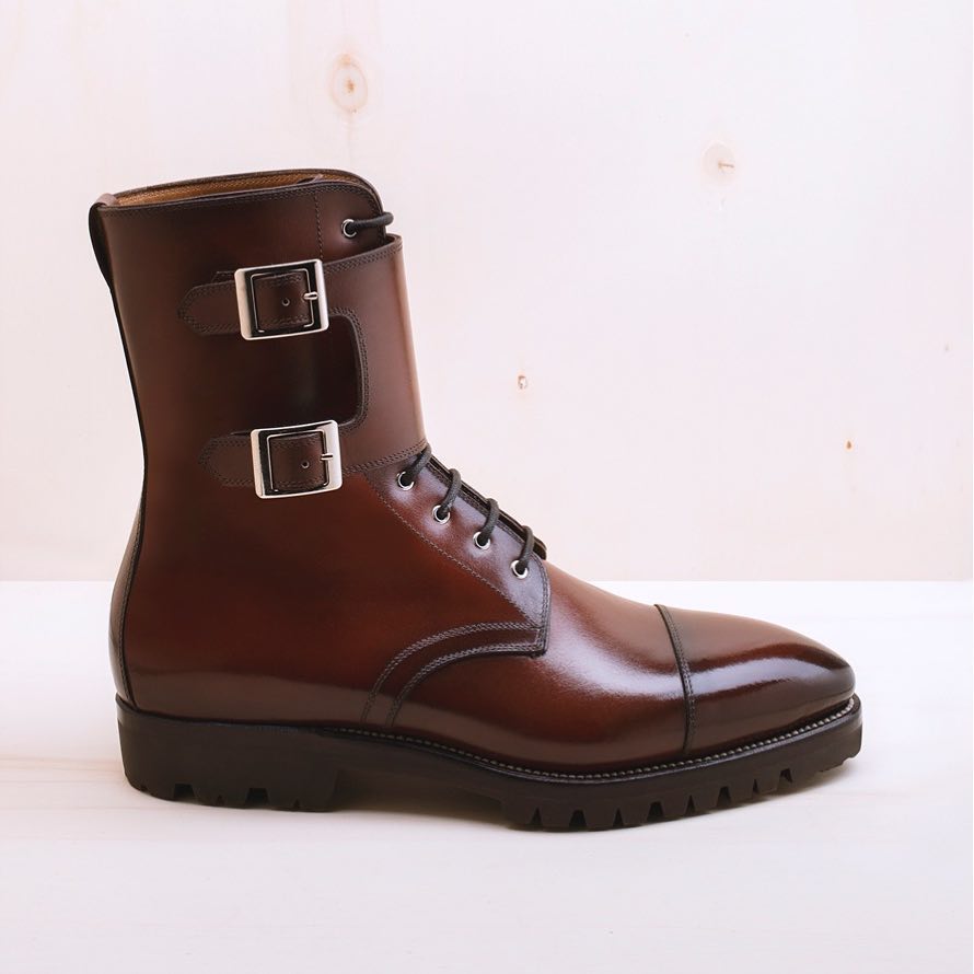 Handmade Mens Combat Ankle High Double Monk Strap Boot