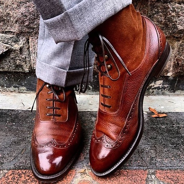 Two Tone Brown / Suede Leather Ankle High Men Lace up Boot