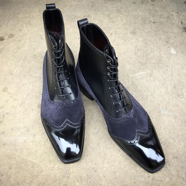 Inner: Soft Sole: Leather Gender : Male Heel: Leather Color: Black / Navy Style: Wingtip Ankle High Boot Lining Soft Calf Leather Lining Totally Hand stitched Manufacturing time 7-10 business days If you can’t find your Size/Color just send us message we will make for you.