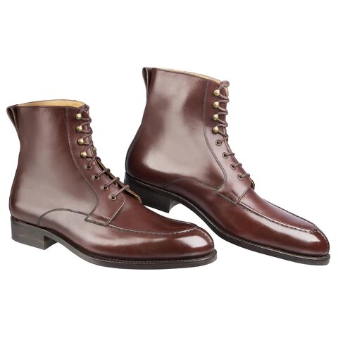 Handmade Men Antique Cognac Calf Leather Dress Ankle Boot