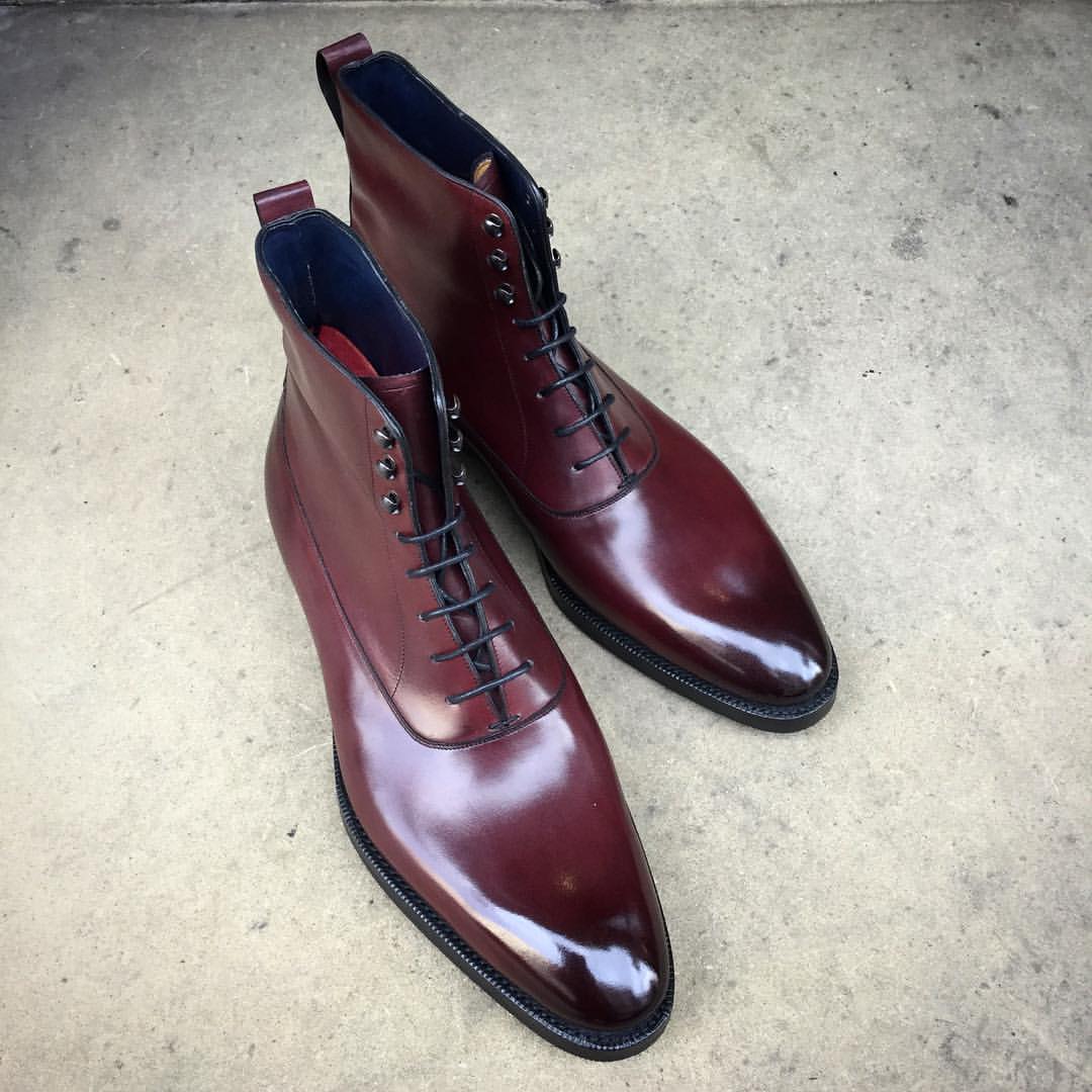 Made to Order in Vintage Rioja Calf-Skin Ankle High Lace up Boots