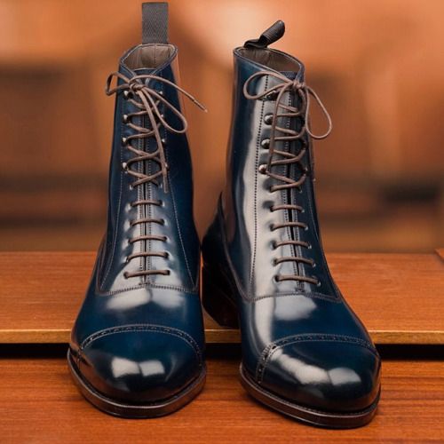 Inner: Soft Sole: Leather Gender : Male Heel: Leather Color: Navy Blue Style: Balmoral Boot Totally Hand stitched Manufacturing time 7-10 business days If you can’t find your Size/Color just send us message we will make for you.