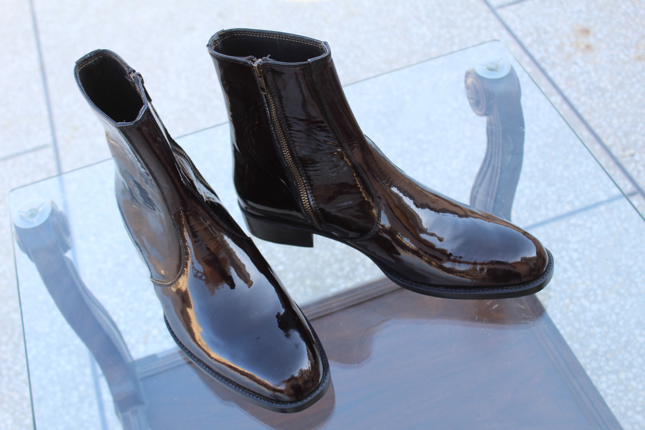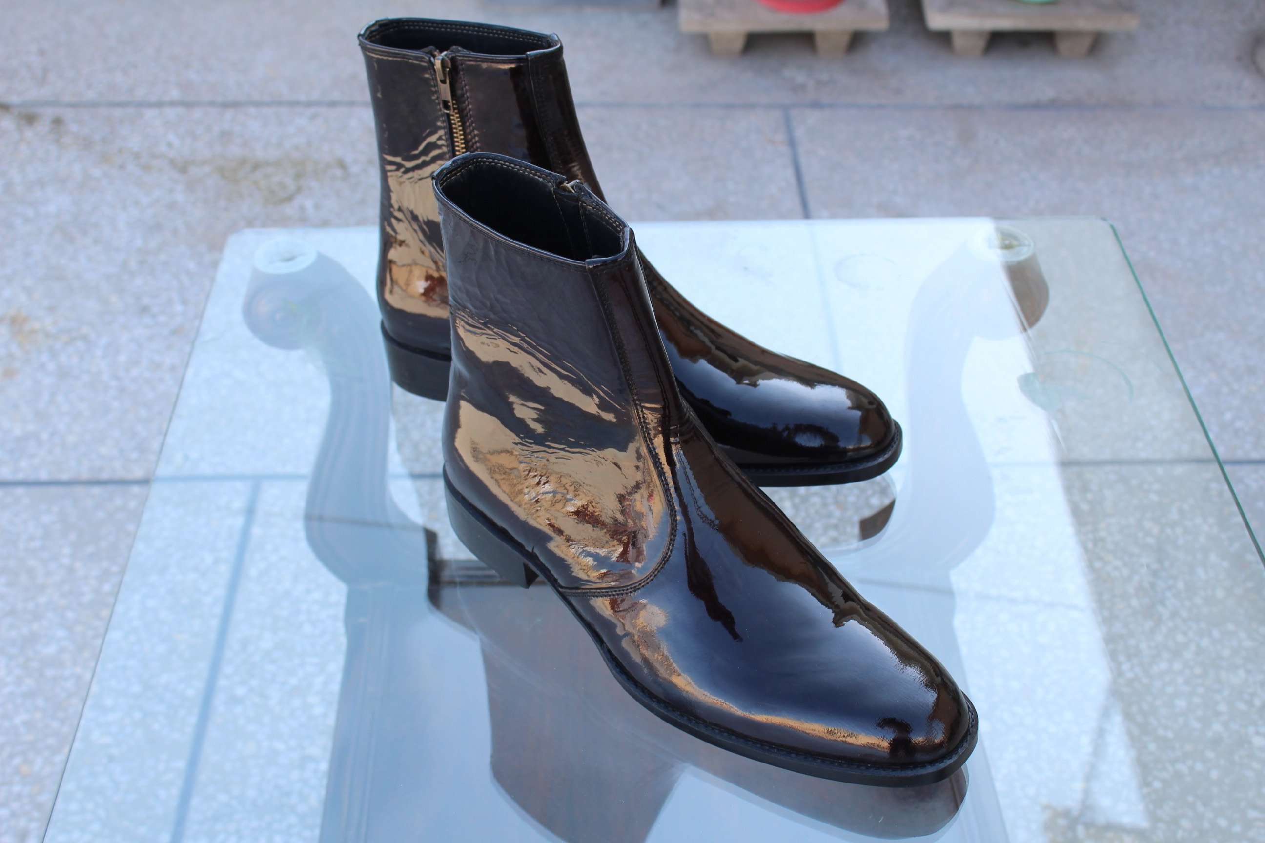 Handmade Men Black Patent Ankle High Zipper Jodhpur Dress Boot