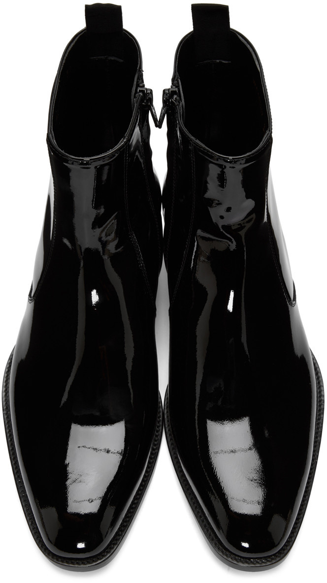 New Handmade Men's Fashion Black Patent Glassy Leather Ankle High Boots