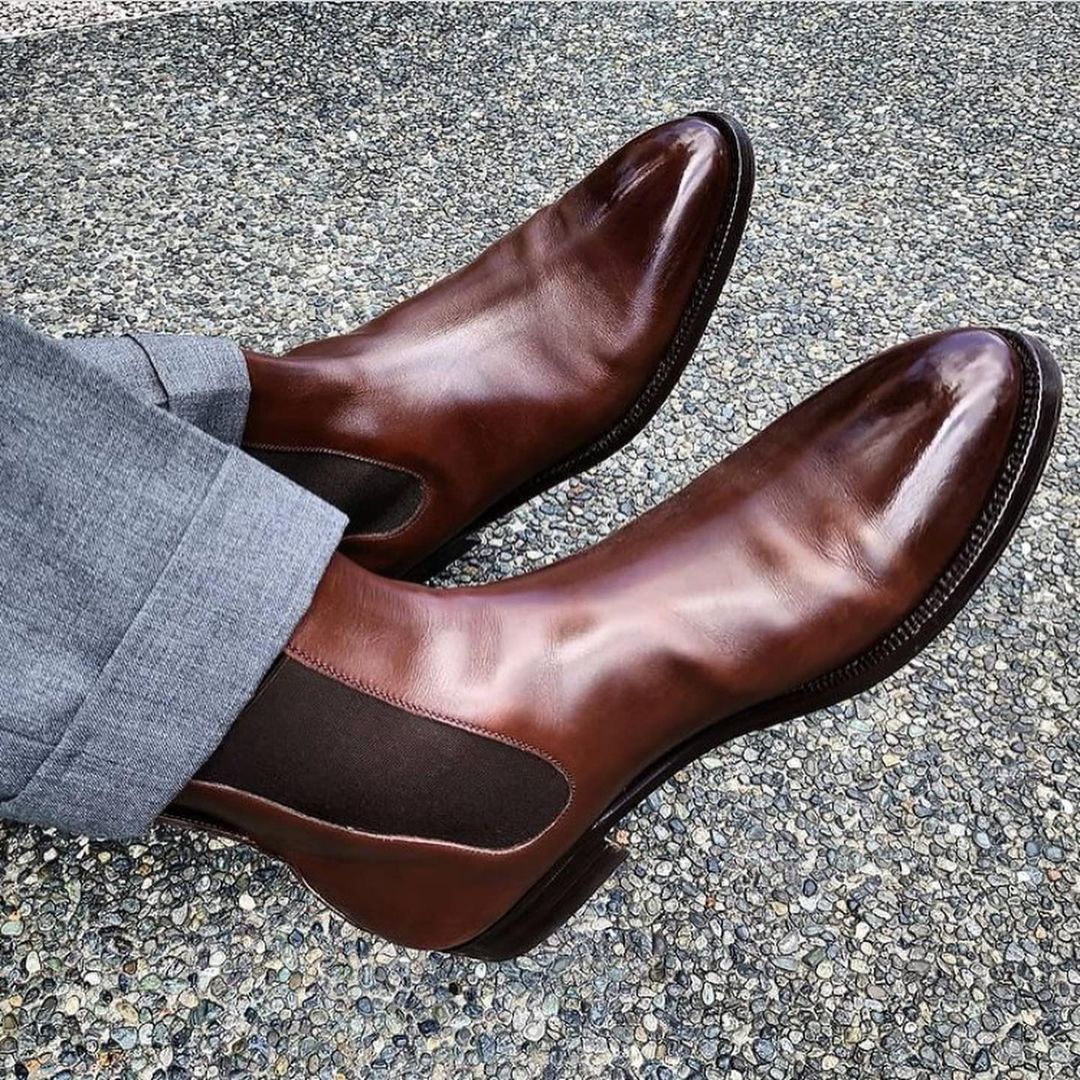 Inner: Soft Sole: Leather Gender : Male Heel: Leather Color: Brown Style: Chelsea Boot Totally Hand stitched Manufacturing time 7-10 business days If you can’t find your Size/Color just send us message we will make for you.