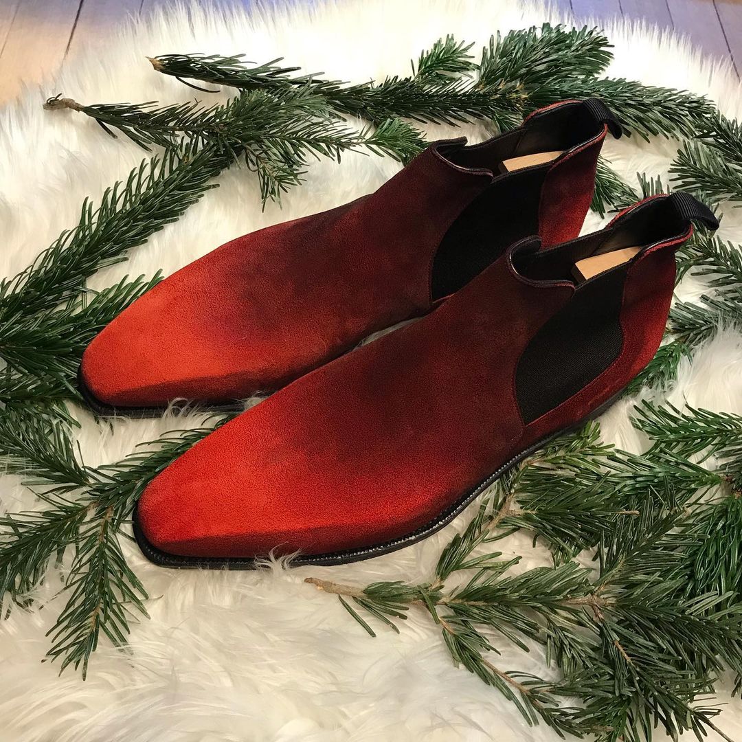 Inner: Soft Sole: Leather Gender : Male Heel: Leather Color: Red Style: Chelsea Boot Totally Hand stitched Manufacturing time 7-10 business days If you can’t find your Size/Color just send us message we will make for you.