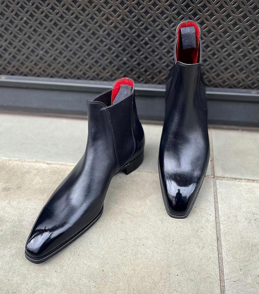 Inner: Soft Sole: Leather Gender : Male Heel: Leather Color: Black Style: Chelsea Boot Totally Hand stitched Manufacturing time 7-10 business days If you can’t find your Size/Color just send us message we will make for you.