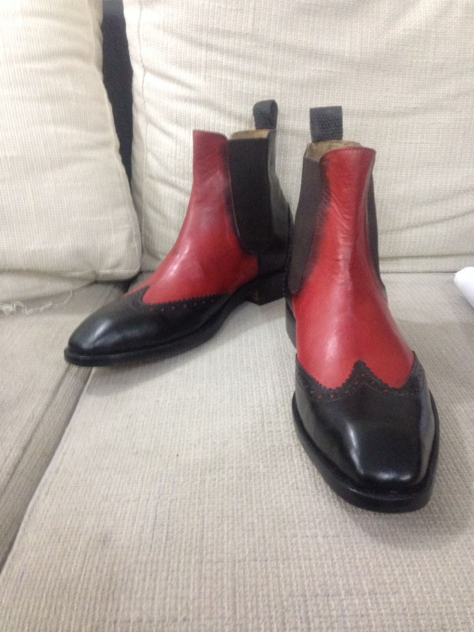 Inner: Soft Sole: Leather Gender : Male Heel: Leather Color: Black / Red Style: Chelsea Boot Lining Soft Calf Leather Lining Totally Hand stitched Manufacturing time 7-10 business days If you can’t find your Size/Color just send us message we will make for you.