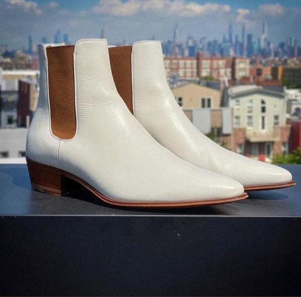 New Handmade White Leather Stylish Chelsea Boots for Men's