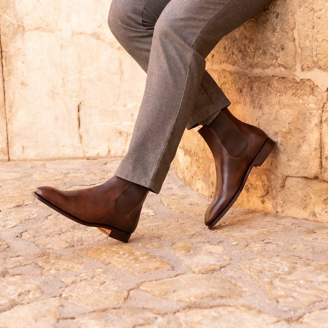 Inner: Soft Sole: Leather Gender : Male Heel: Leather Color: Brown Style: Chelsea Boot Totally Hand stitched Manufacturing time 7-10 business days If you can’t find your Size/Color just send us message we will make for you.