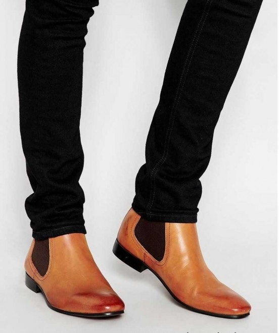 Handmade Mens Tan Color Leather Chelsea Casual Ankle Boots