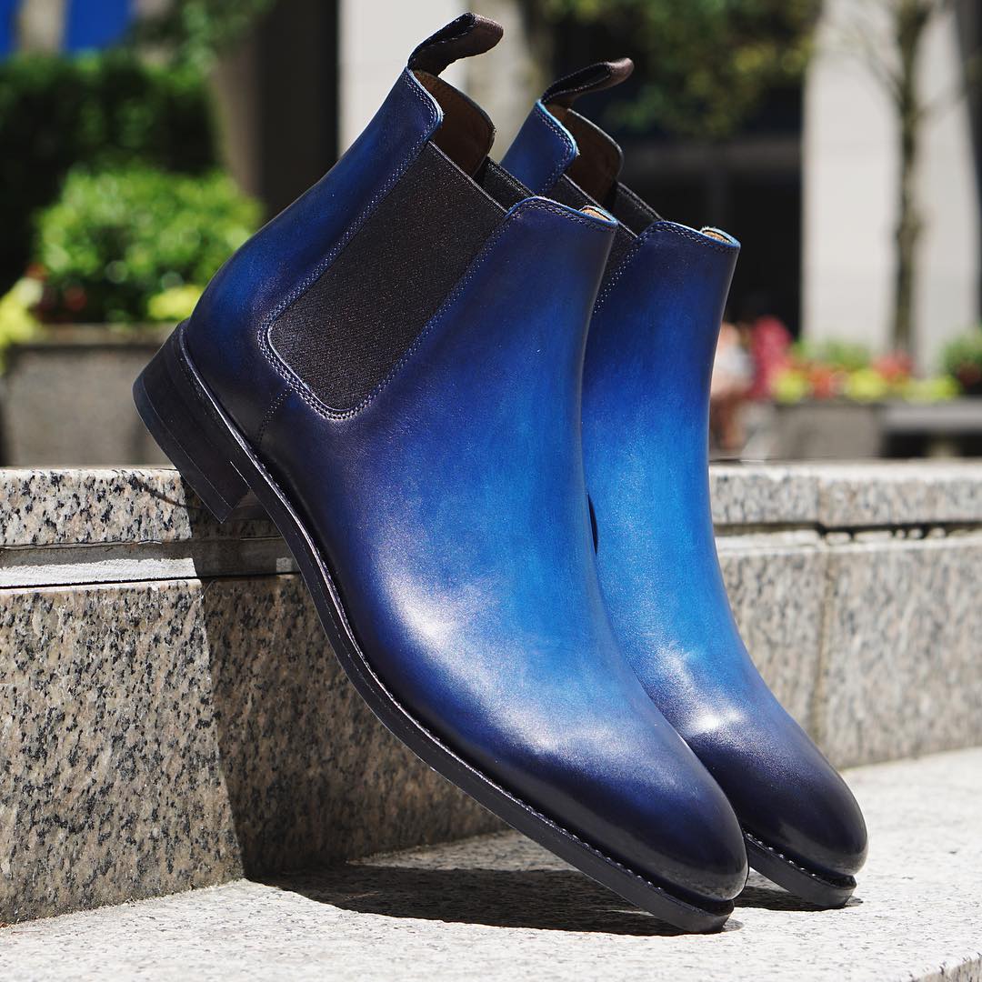 Inner: Soft Sole: Leather Gender : Male Heel: Leather Color: Blue Style: Chelsea Boot Totally Hand stitched Manufacturing time 7-10 business days If you can’t find your Size/Color just send us message we will make for you.