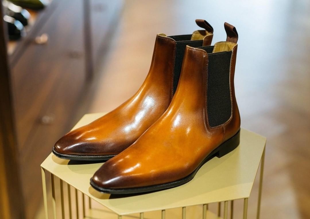Handmade Brown Leather Chelsea Mens Fashion Boot