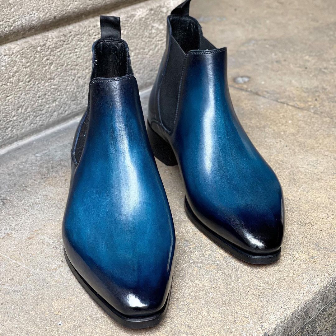 Inner: Soft Sole: Leather Gender : Male Heel: Leather Color: Blue Style: Chelsea Boot Totally Hand stitched Manufacturing time 7-10 business days If you can’t find your Size/Color just send us message we will make for you.