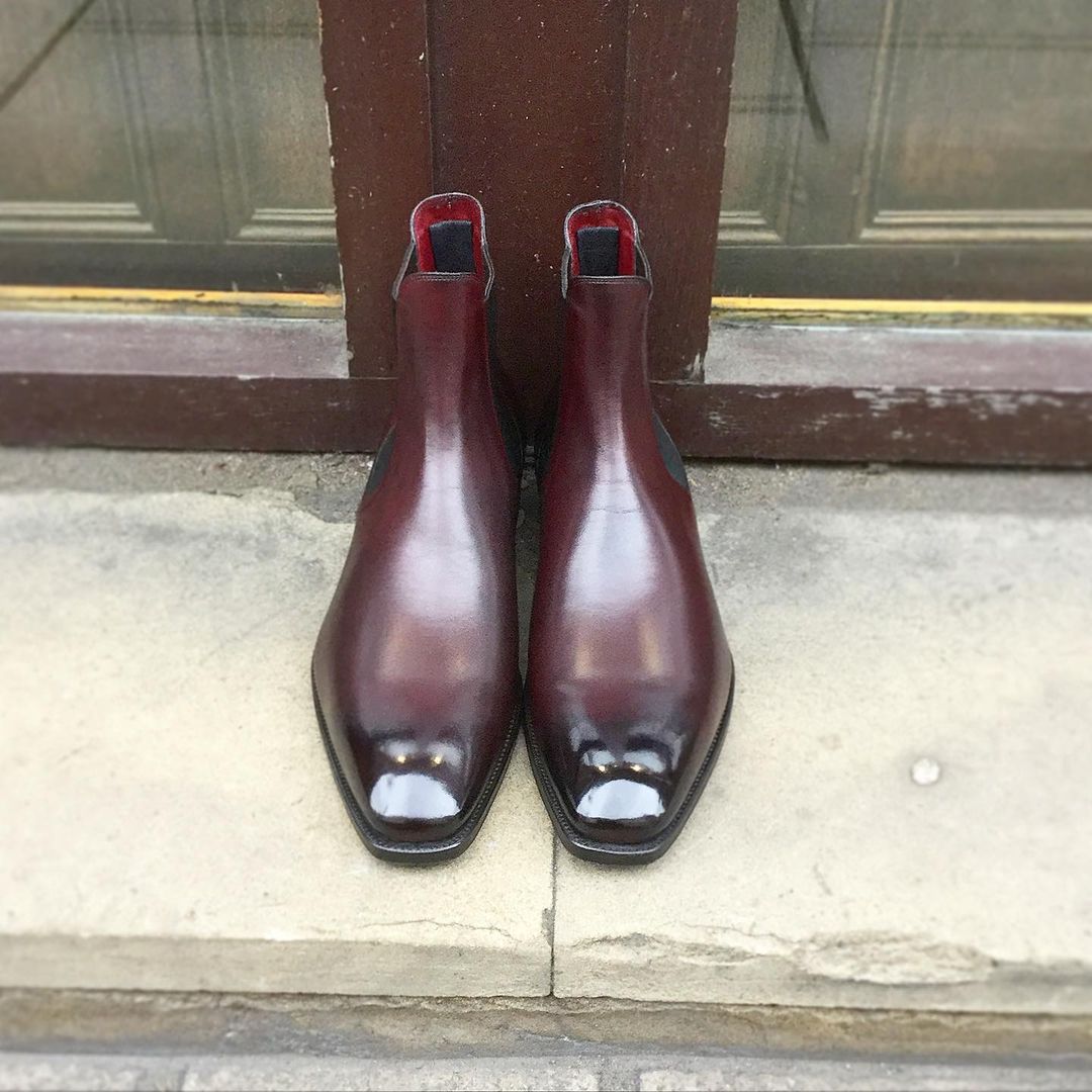 The Elegant Burnham Chelsea Boot in Vintage Rioja with a Burnished Toe