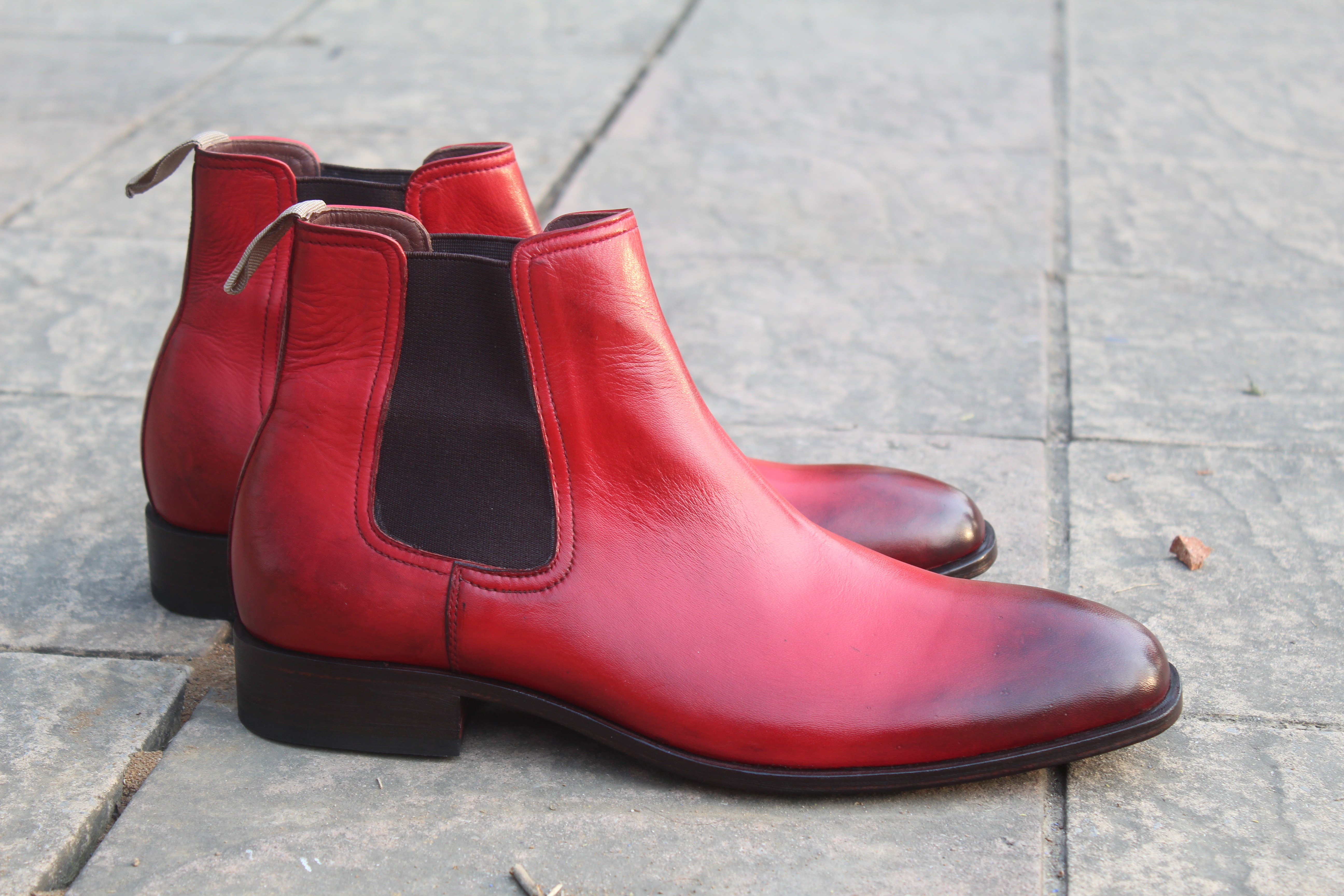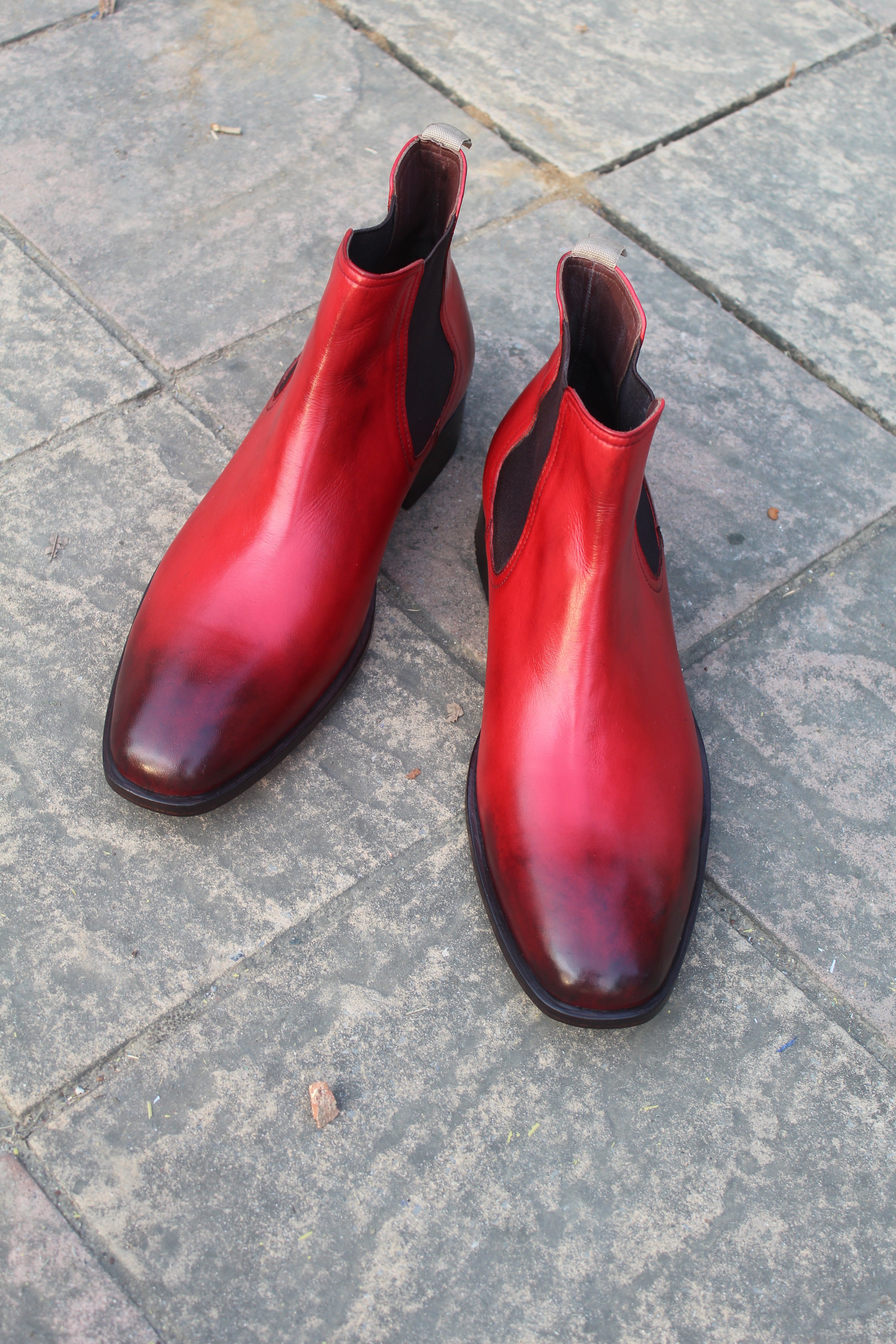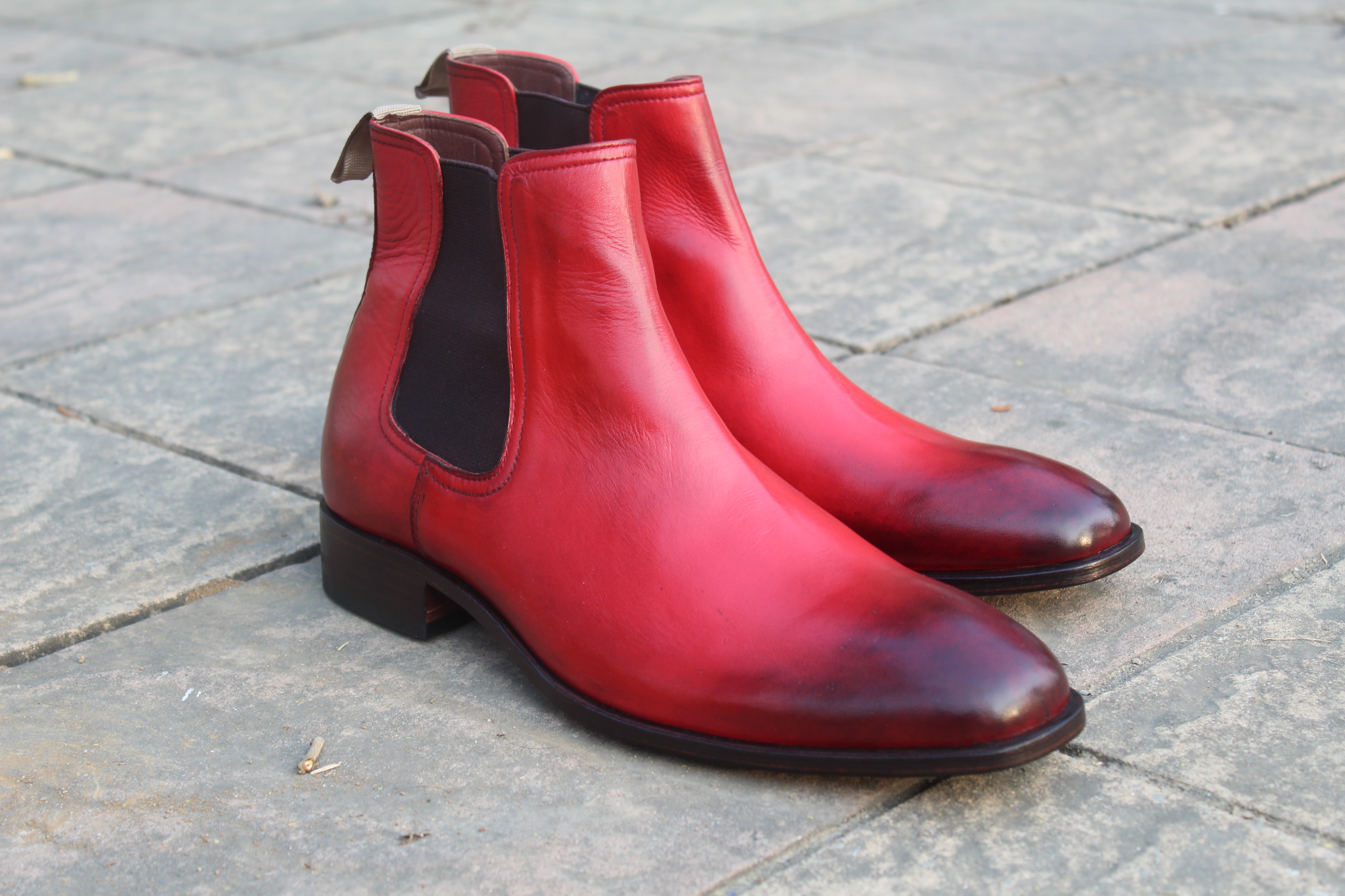 Inner: Soft Sole: Leather Gender : Male Heel: Leather Color: Red Style: Chelsea Boot Lining Soft Calf Leather Lining Totally Hand stitched Manufacturing time 7-10 business days If you can’t find your Size/Color just send us message we will make for you.