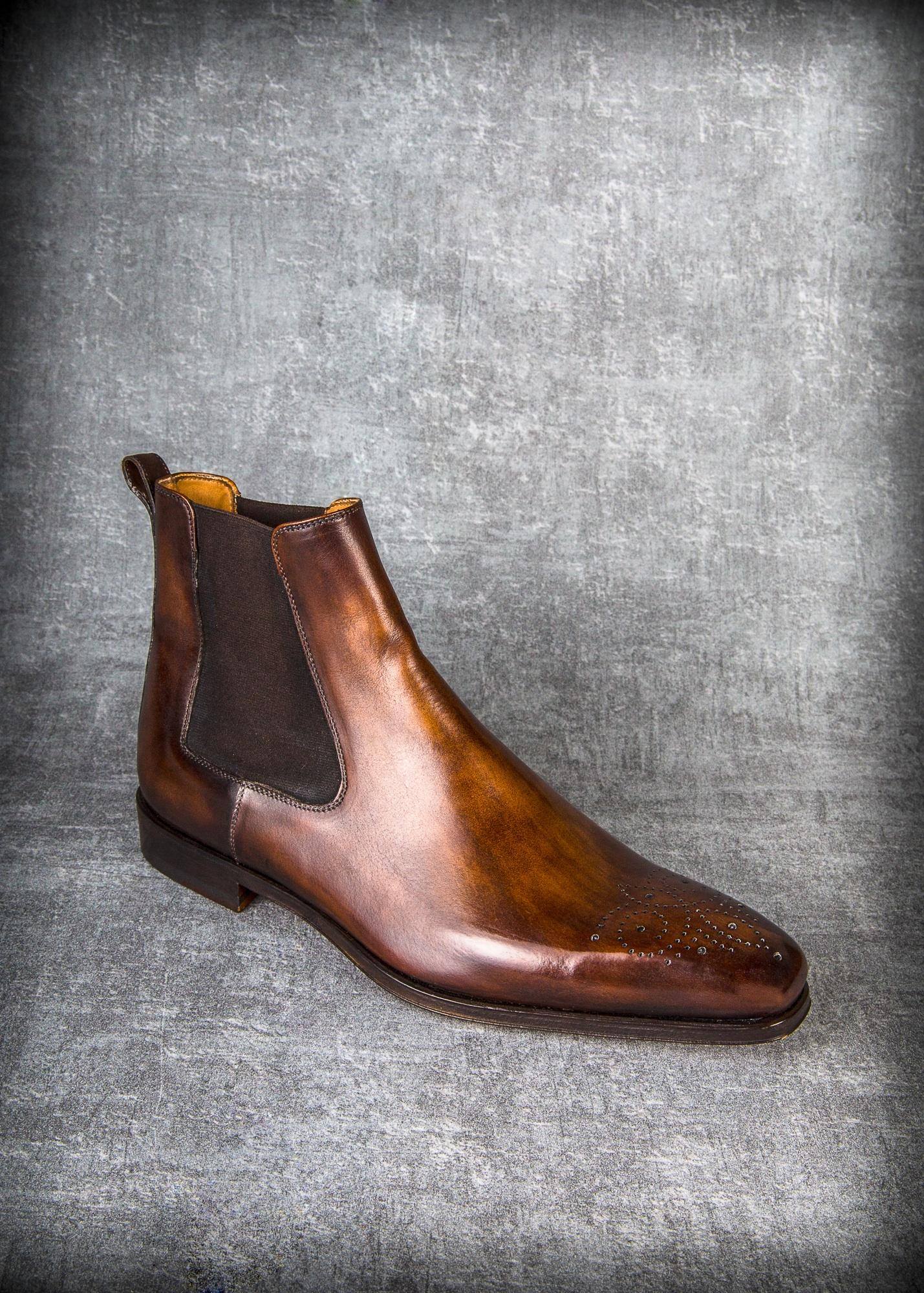 Inner: Soft Sole: Leather Gender : Male Heel: Leather Color: Brown Patina Style: Chelsea Boot Lining Soft Calf Leather Lining Totally Hand stitched Manufacturing time 7-10 business days If you can’t find your Size/Color just send us message we will make for you.