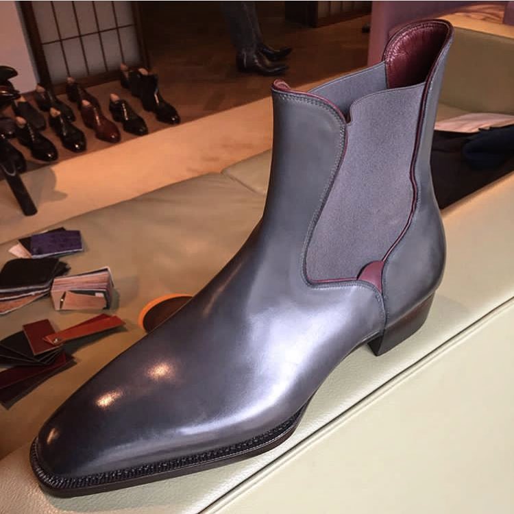 Inner: Soft Sole: Leather Gender : Male Heel: Leather Color: Gray Style: Chelsea Boot Lining Soft Calf Leather Lining Totally Hand stitched Manufacturing time 7-10 business days If you can’t find your Size/Color just send us message we will make for you.