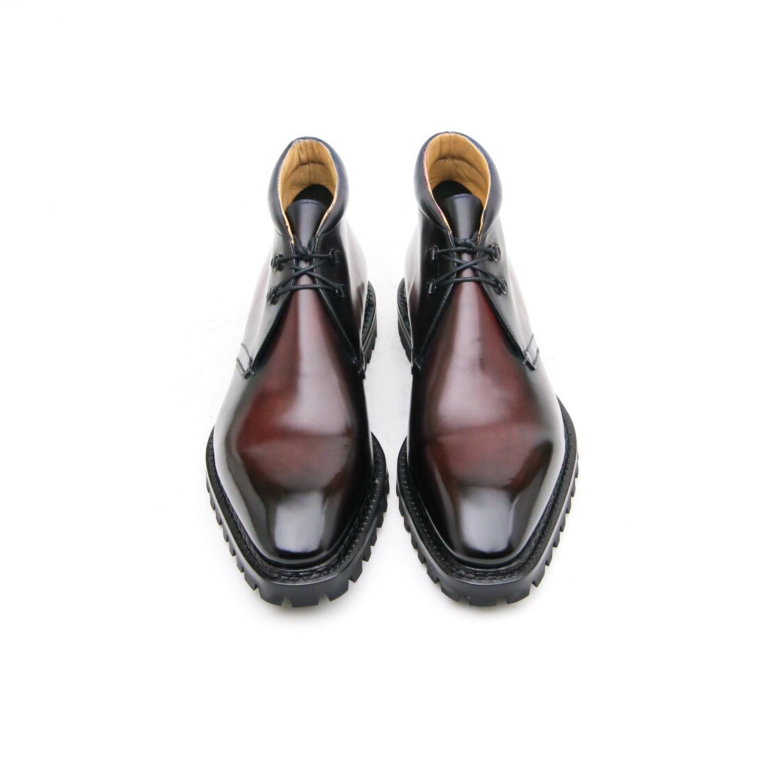 Mens Handmade Burgundy Patina Leather Chukka Boots