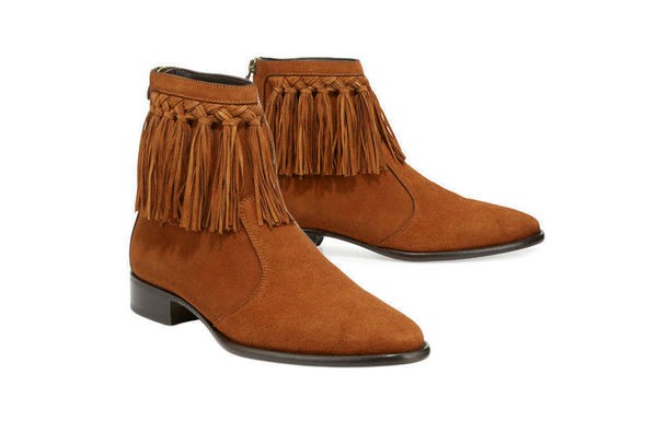 Mens Cow Boy High Ankle Brown Color Suede Leather Handmade Fringe Boots