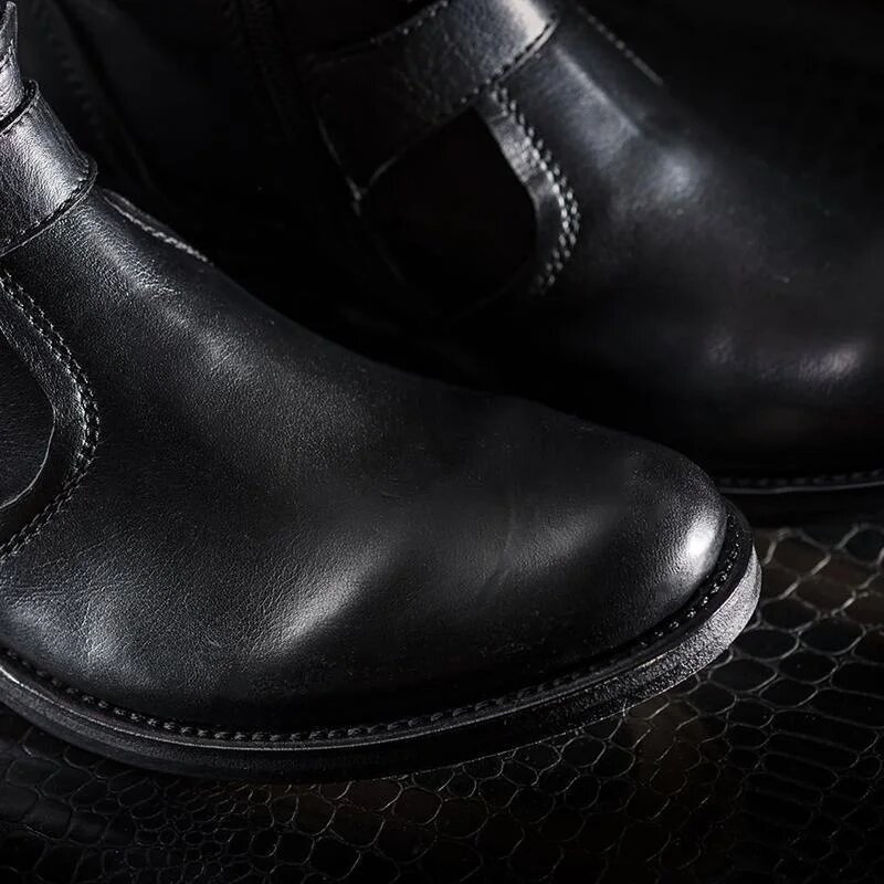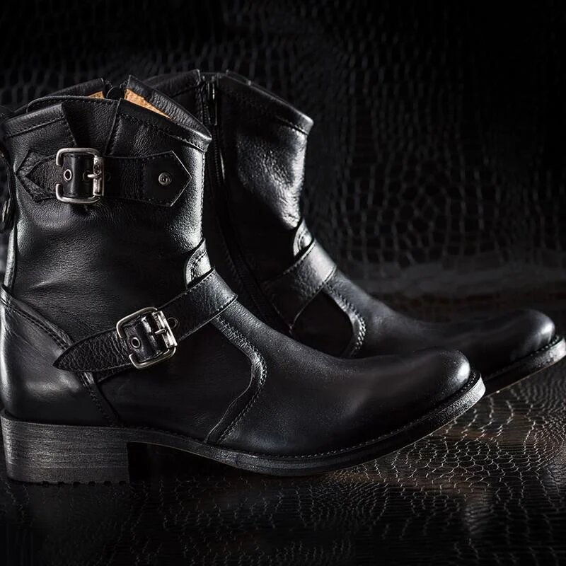 Inner: Soft Sole: Leather Gender : Male Heel: Leather Color: Black Style: Retro Buckle Boots Occasion: Casual, Daily Toe-Shape: Round Toe Closure: Zipper Totally Hand stitched Manufacturing time 7-10 business days If you can’t find your Size/Color just send us message we will make for you.