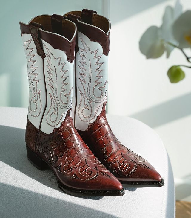 Men Classic Western Beautiful Alligator and French Calf Leather Cowboy Boot