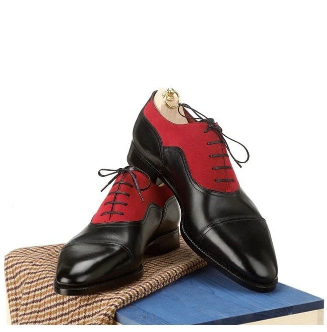 Men's Handmade Black & Red Cap Toe Leather & Suede Lace Up Dress Shoes
