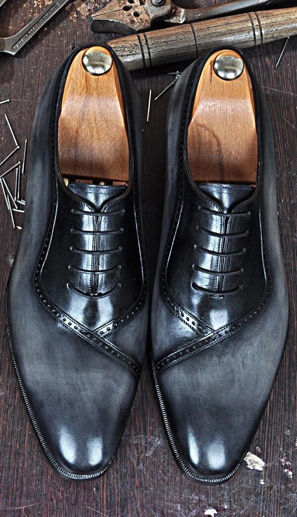 Inner: Soft Sole: Leather Gender : Male Heel: Leather Color: Black Grey Style: Lace-Up Shoe Totally Hand stitched Manufacturing time 7-10 business days If you can’t find your Size/Color just send us message we will make for you.