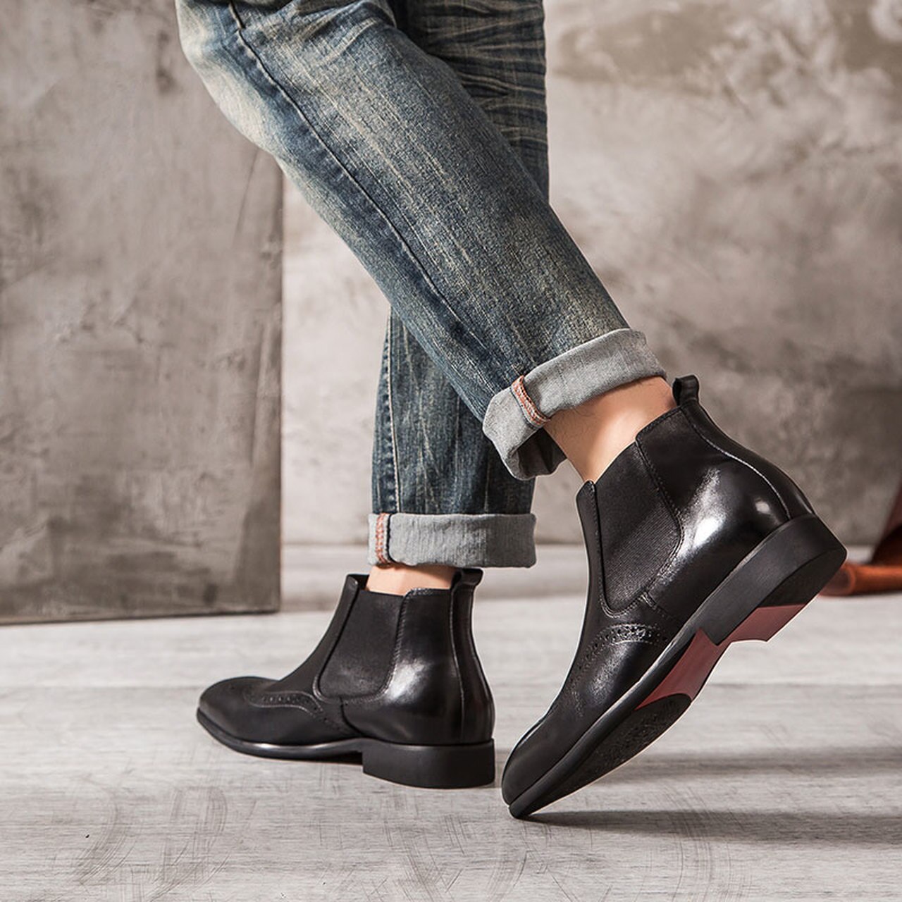 Inner: Soft Sole: Leather Gender : Male Heel: Leather Color: Black Style: Men Dress Chelsea Ankle Boot Totally Hand stitched Manufacturing time 7-10 business days If you can’t find your Size/Color just send us message we will make for you.