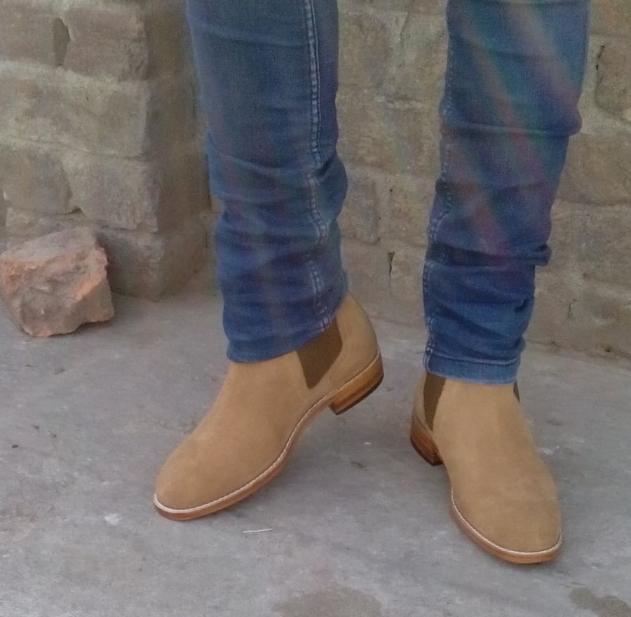 Beige Color Rounded Toe Stylish Party Wear Men Magnificent Suede Leather Boots