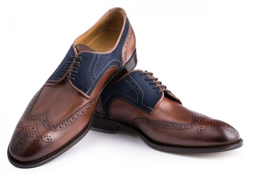 Handmade Men Wingtip Brogues, Wing Tip Blue Brown Dress Formal shoes