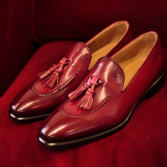 New Men's Pure Leather Stylish Loafer Tassel burgundy color Shoes For Men's