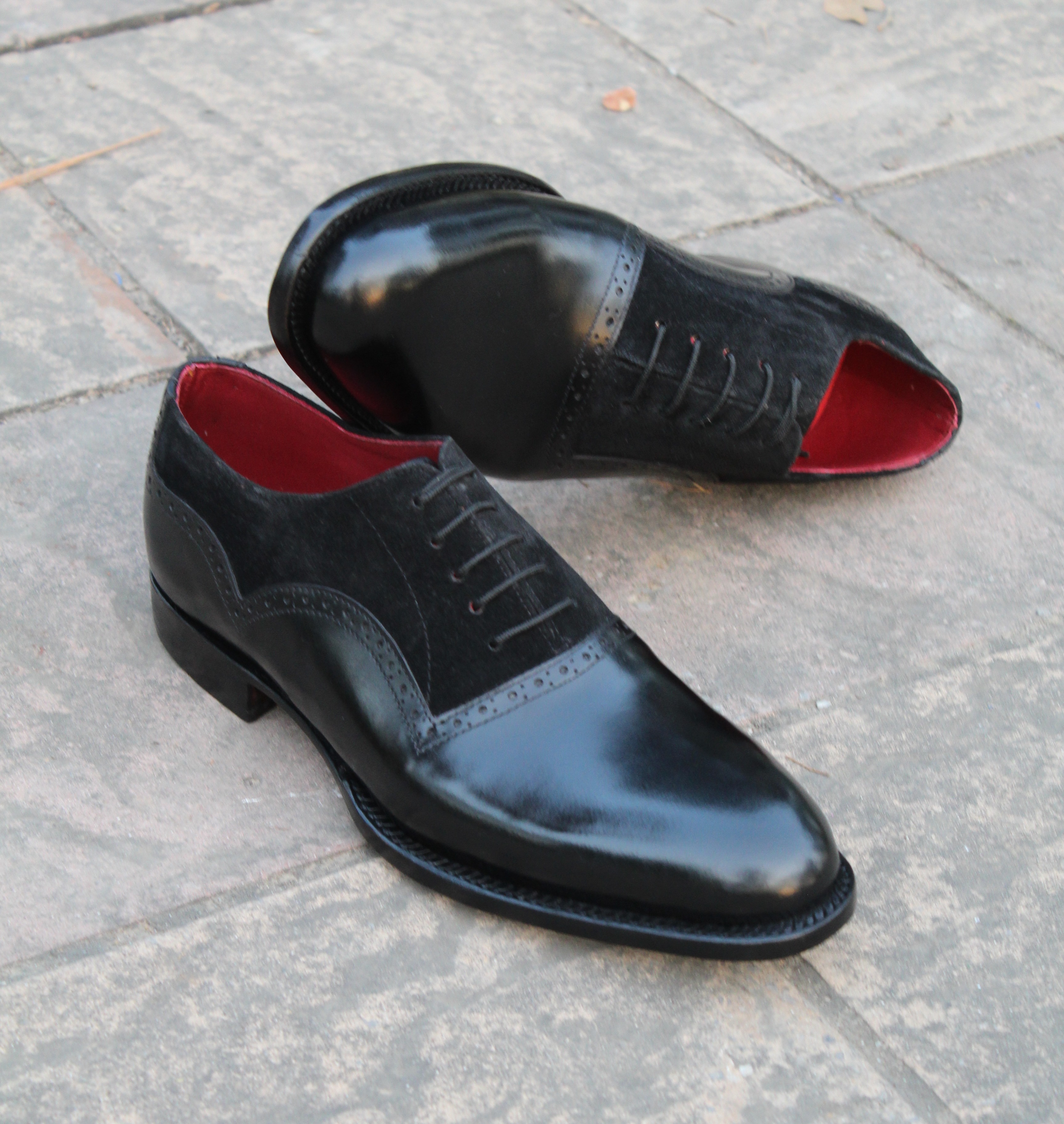Black Calf and Black Suede Classic Men Dress Lace up Oxford Shoes