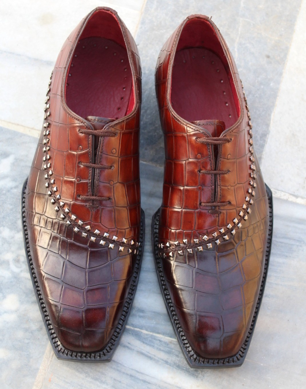 Luxury Handmade Mens Unique Brown Crocodile Texture Leather Alligator Dress Fashion Shoes