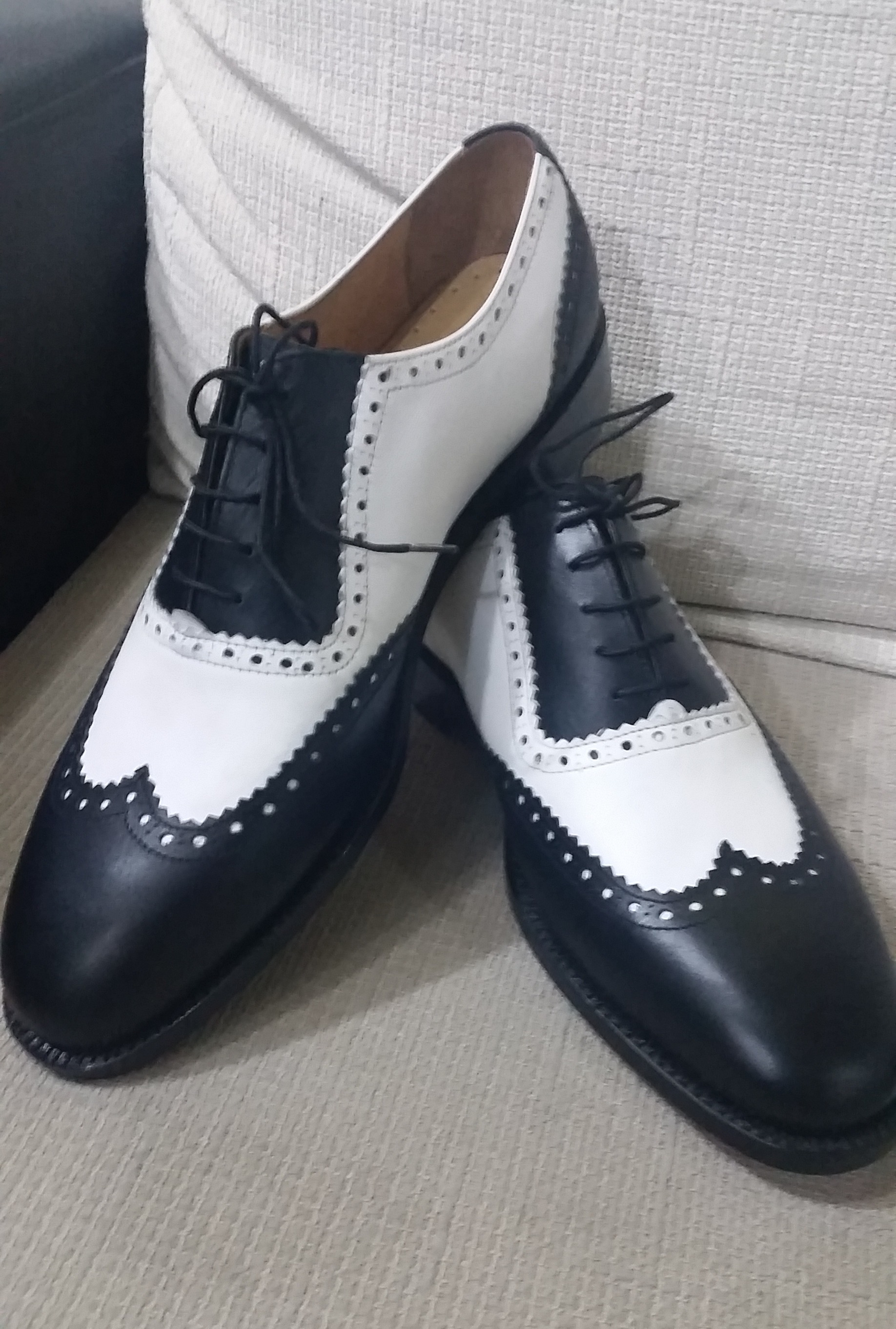 Inner: Soft Sole: Leather Gender : Male Heel: Leather Color: Black / White Style: Dress Shoes Lining Soft Calf Leather Lining Totally Hand stitched Manufacturing time 7-10 business days If you can’t find your Size/Color just send us message we will make for you.
