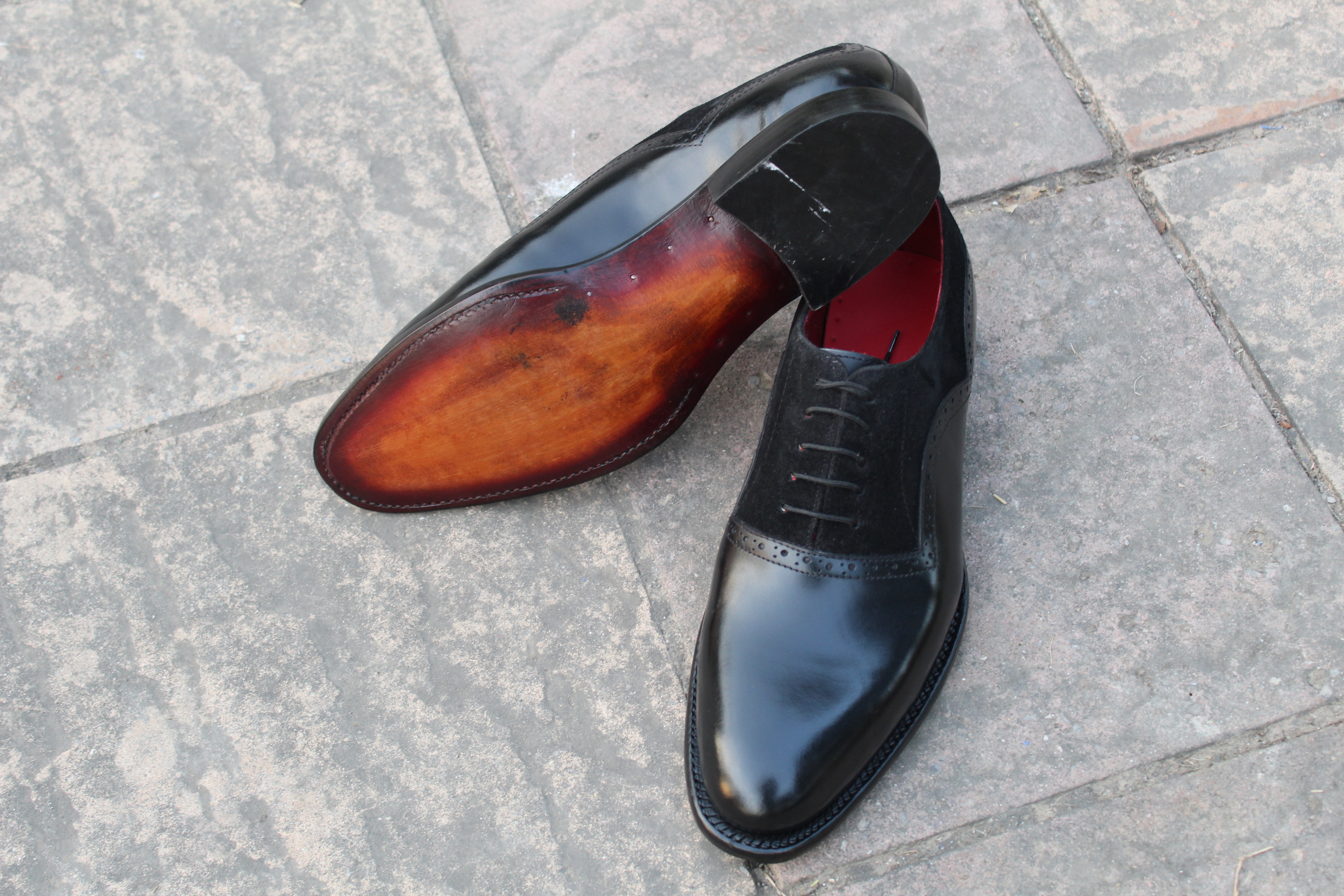 Black Calf and Black Suede Classic Men Dress Lace up Oxford Shoes