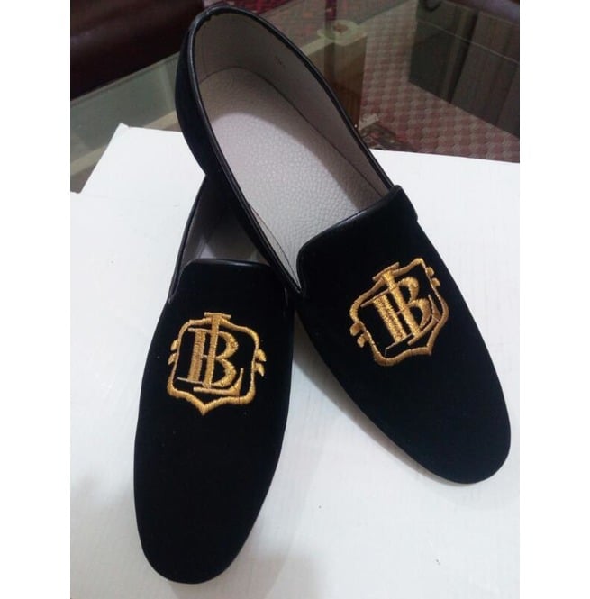 Handmade Black Velvet Loafer Embroidery Men Shoes