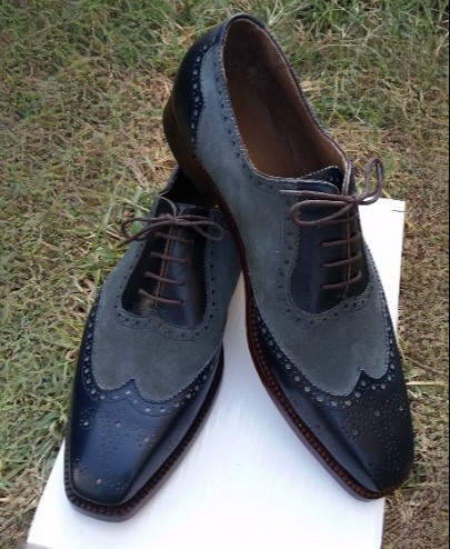 Inner: Soft Sole: Leather Gender : Male Heel: Leather Color: Black / Gray Style: Dress Wingtip Shoes Lining Soft Calf Leather Lining Totally Hand stitched Manufacturing time 7-10 business days If you can’t find your Size/Color just send us message we will make for you.