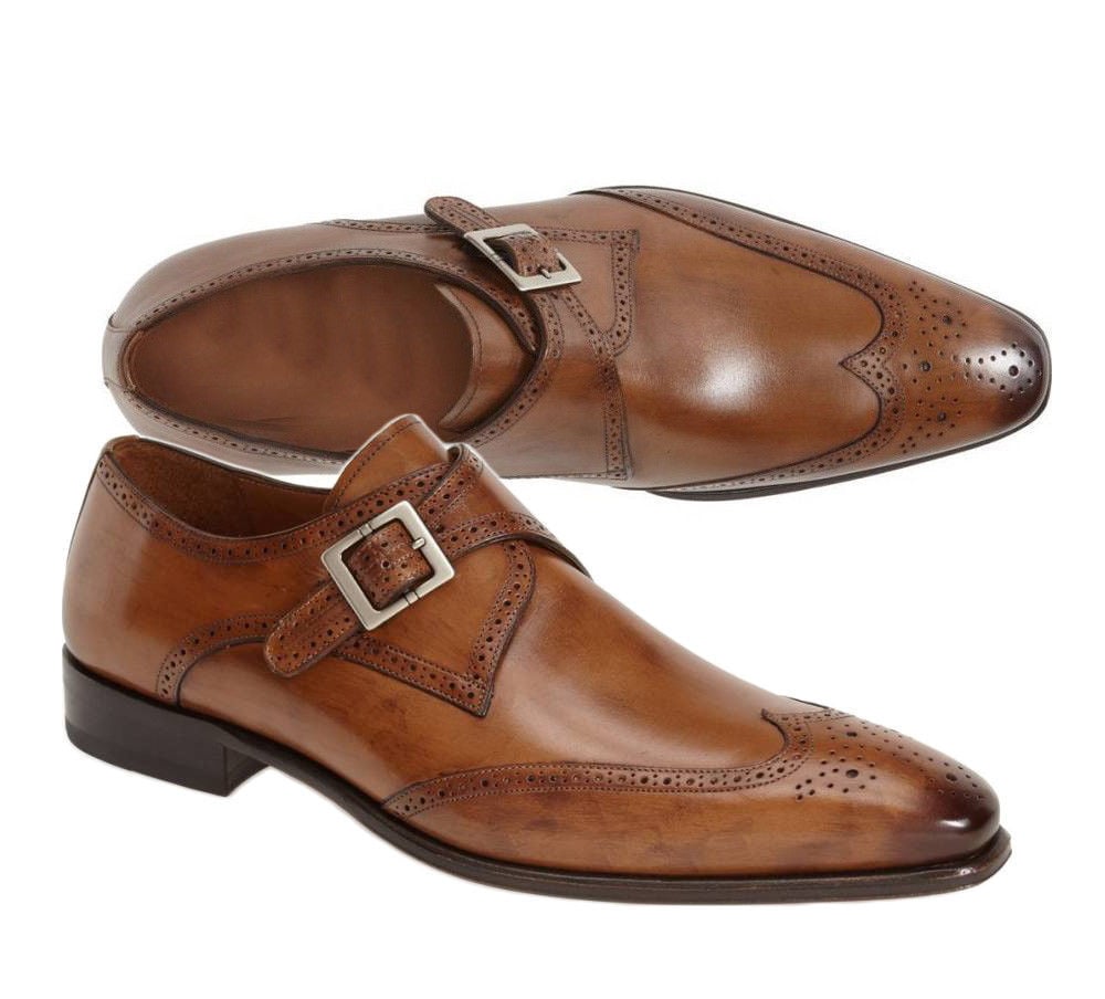 New Handmade Men's Tan brown wing tip brogue monk shoes, Men tan leather shoes