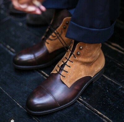 Inner: Soft Sole: Leather Gender : Male Heel: Leather Color: Maroon Tan Style: High Ankle, Lace Up Totally Hand stitched Manufacturing time 7-10 business days If you can’t find your Size/Color just send us message we will make for you.