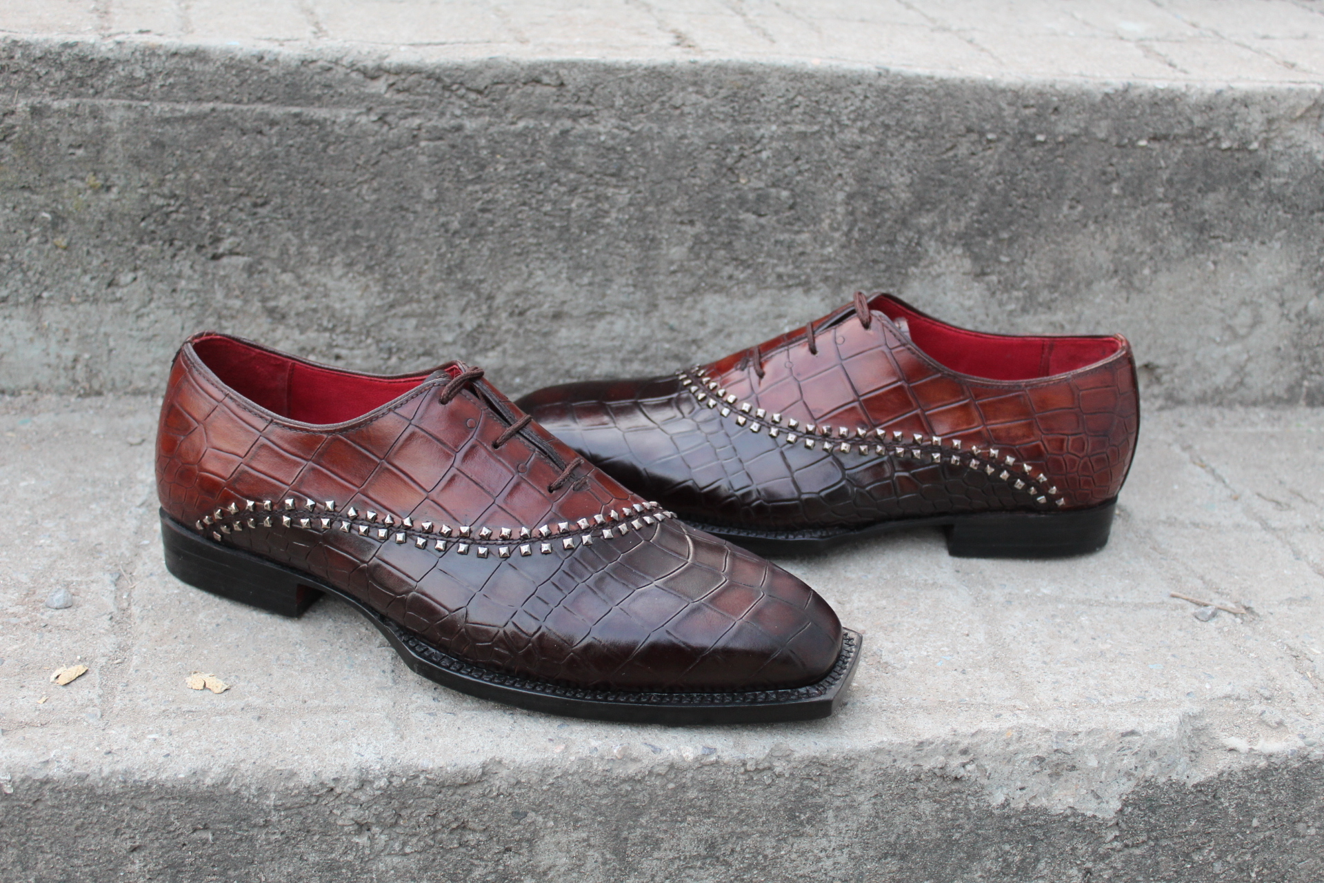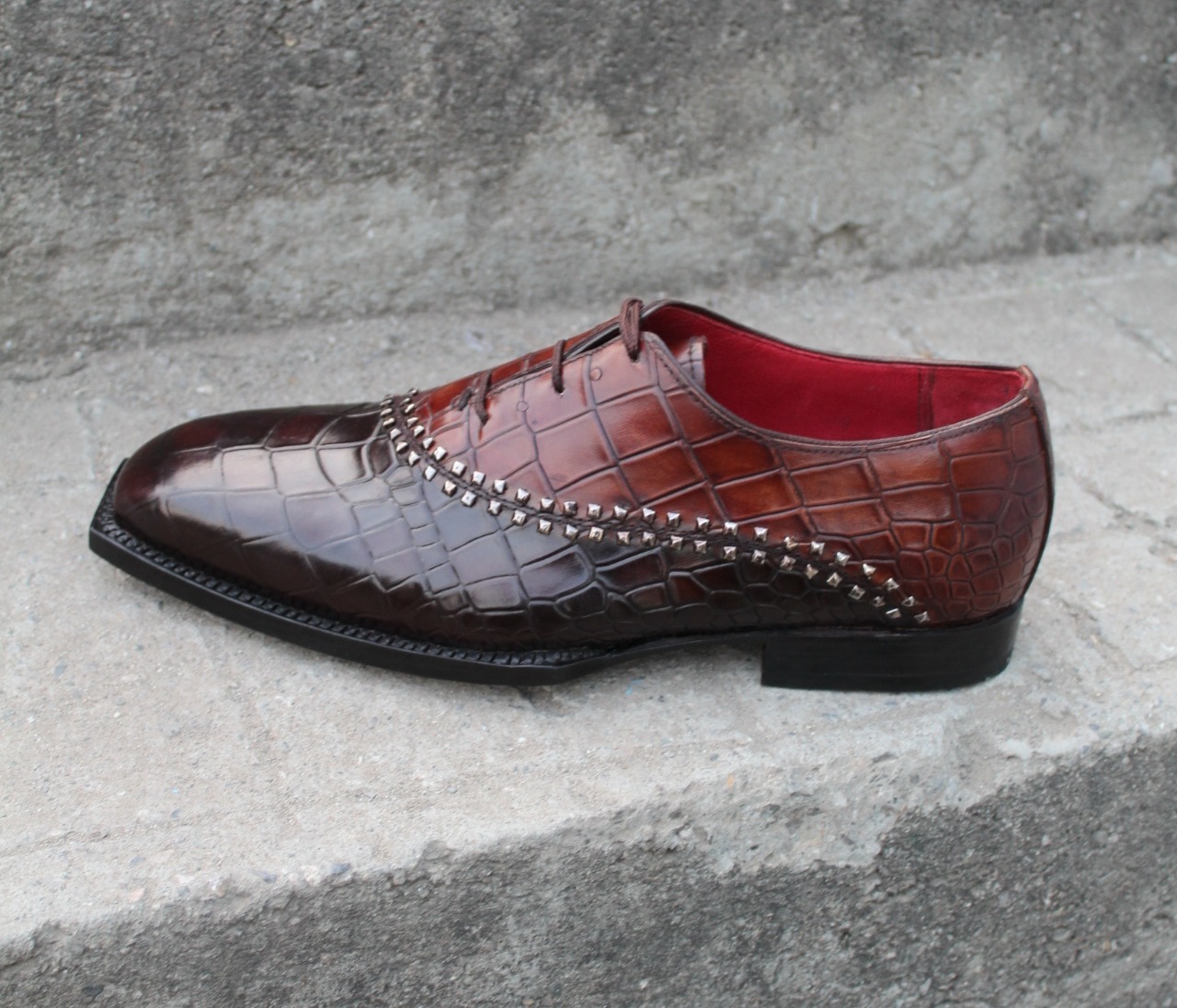 Luxury Handmade Mens Unique Brown Crocodile Texture Leather Alligator Dress Fashion Oxford Shoes