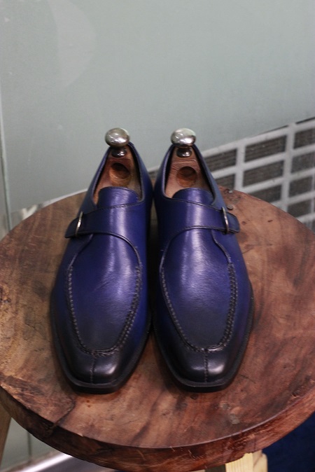 Men's Handmade Leather Shoes Two Tone Blue Leather Stylish Single Monk Strap Dress & Formal Wear Shoes